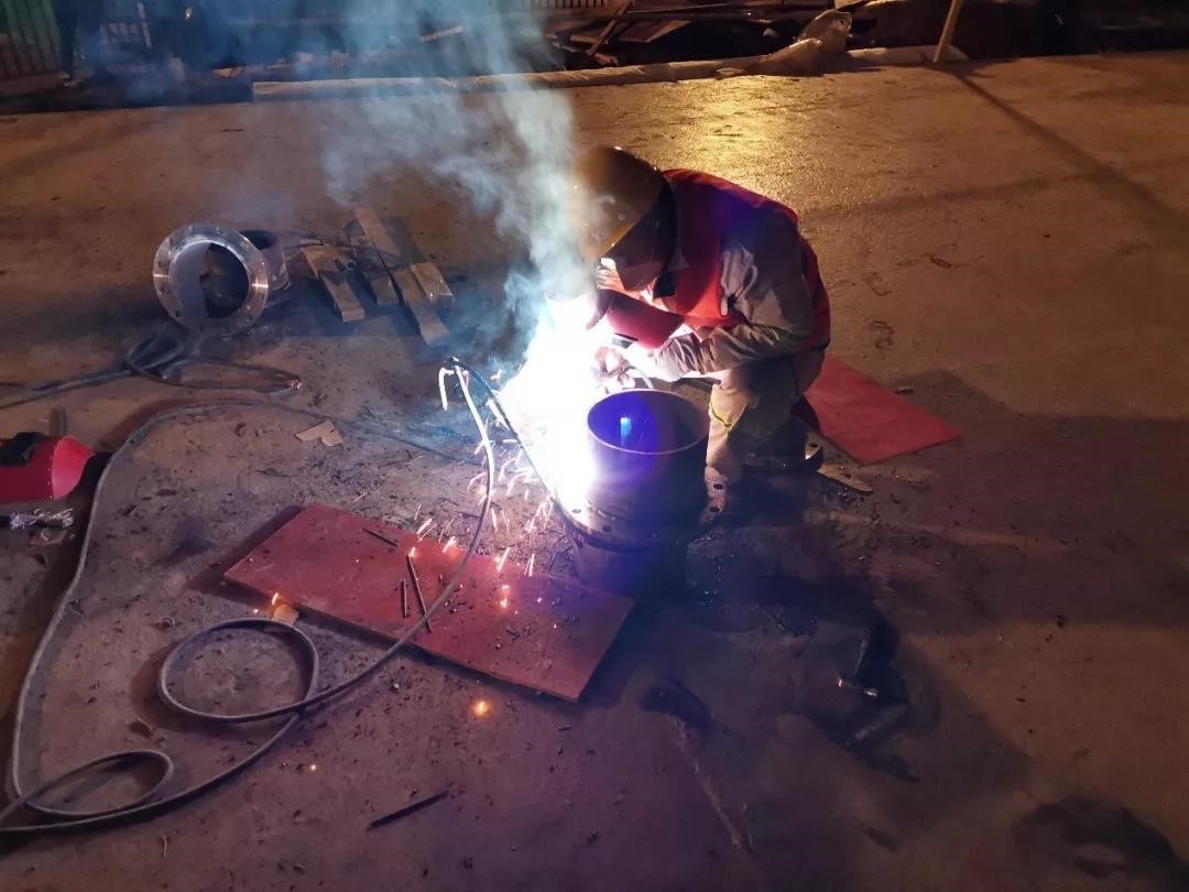 他介紹,此前武漢連夜陰雨,場地內坑坑洼洼,到處積水。由于工程現場情況復雜,交叉施工困難重重,加上工期緊張,疫情又牽動人心。但大家并沒有怨言,哪怕全身滿是泥濘、冷水浸透雙腳,凍得赤紅的手卻依然沉穩有力,在寒風中擰緊一顆顆螺栓,馬不停蹄地安裝設備、調試系統。終于在項目組50多位小伙伴鏖戰7天,24小時不間斷輪流施工后,今天(2號)下午,火神山污水處理工程成功交付。